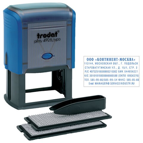 Штамп самонаборный 7-строчный, оттиск 60х33 мм, синий без рамки, TRODAT 4928/DB, КАССЫ В КОМПЛЕКТЕ