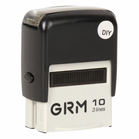 Штамп самонаборный (мини) 3-строчный, оттиск 26х12 мм, синий, GRM 10 DIY, КАССА В КОМПЛЕКТЕ, 116000000