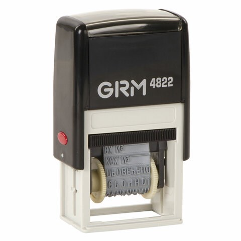Позволяет проставить 12 бухгалтерских терминов: КОПИЯ, АННУЛИРОВАНО, ДЕПОНИРОВАНО, ПОГАШЕНО, ОПЛАЧЕНО, ПОЛУЧЕНО, ПРОВЕРЕНО, СРОЧНО, ОРИГИНАЛ, ОБРАЗЕЦ, ВХ. №___, ИСХ. №___. Изменение оттиска производится вращением колесика.