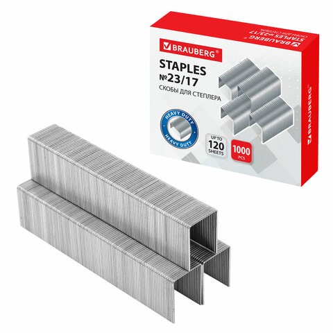 Скобы для степлера №23/17, 1000 штук, BRAUBERG, от 50 до 120 листов, 221164
