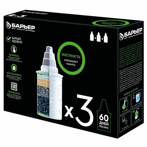 Сменные кассеты БАРЬЕР "Жесткость", для жесткой воды, для всех фильтров-кувшинов БАРЬЕР, КОМПЛЕКТ 3 шт., К273Р00