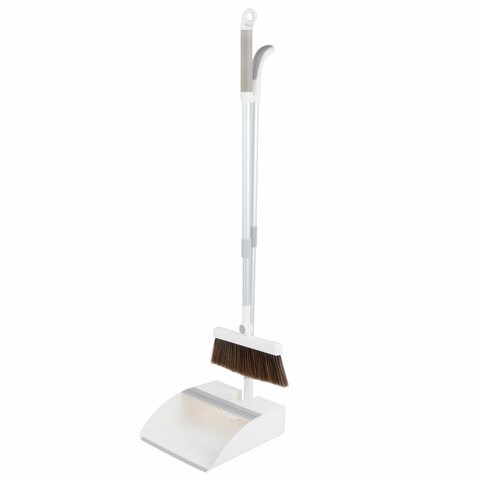 Совок для мусора + щетка-телескоп, рукоятка 63-108 см, с магнитным креплением, бело-серый, DASWERK, 608950