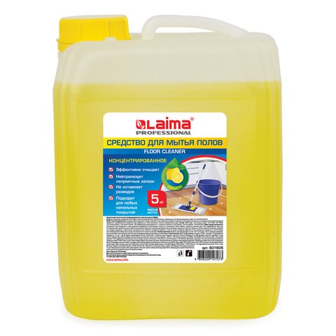 Средство для мытья пола 5 кг ЛАЙМА PROFESSIONAL концентрат, "Лимон", 880281