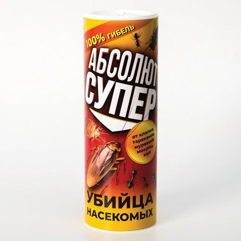ТРОЙНОЙ ЭФФЕКТ - действие 3 компонентов не оставляет шансов на выживание насекомым, устойчивым к другим средствам. Средство "АБСОЛЮТ ДУСТ СУПЕР" предназначено для уничтожения тараканов, муравьев, клопов, блох, мух, сверчков, мокриц, уховерток и чешуйниц.