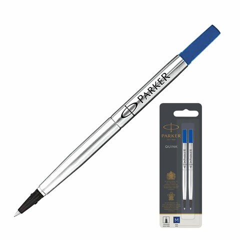 Стержень для ручки-роллера PARKER "Quink RB", КОМПЛЕКТ 2 шт., металлический, 116 мм, узел 0,7 мм, синий, 1950327