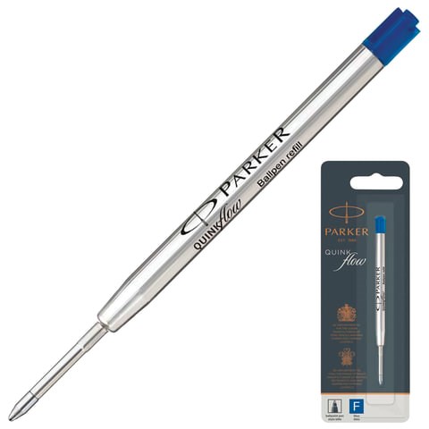 Стержень шариковый PARKER "Quinkflow", металлический, 98 мм, узел 0,8 мм, блистер, синий, 1950368