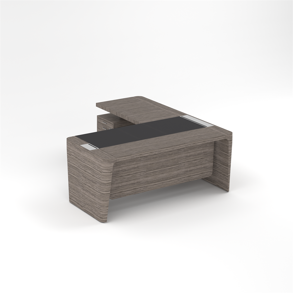 Стол для руководителя левый с кожаным бюваром, приставкой на малой тумбе и фронтальной панелью
