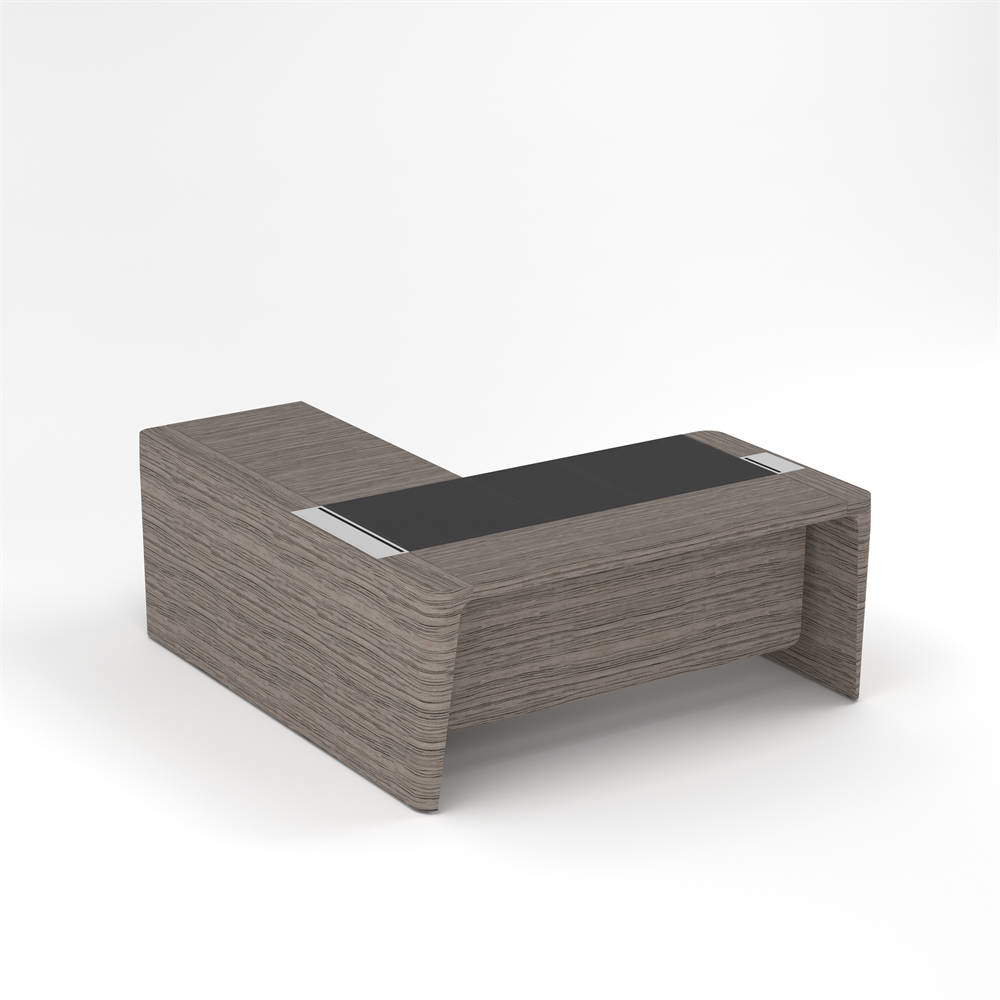 Стол для руководителя левый с кожаным бюваром, приставкой на большой тумбе и фронтальной панелью