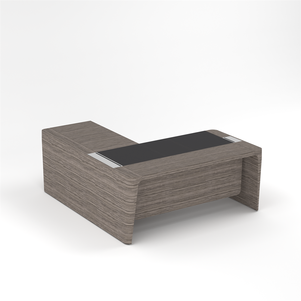 Стол для руководителя правый с кожаным бюваром, приставкой на малой тумбе и фронтальной панелью