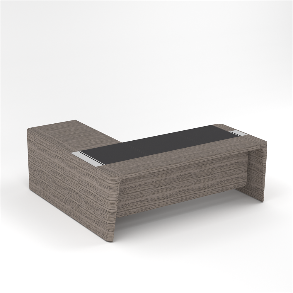 Стол для руководителя левый с кожаным бюваром, приставкой на большой тумбе и фронтальной панелью