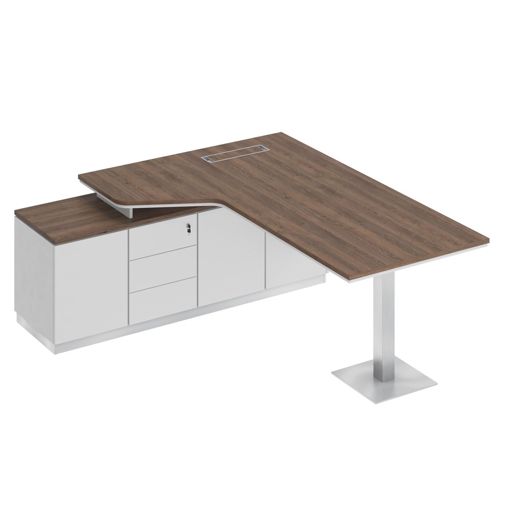 Стол руководителя эргономичный (опора ДСП) на опорной тумбе правый