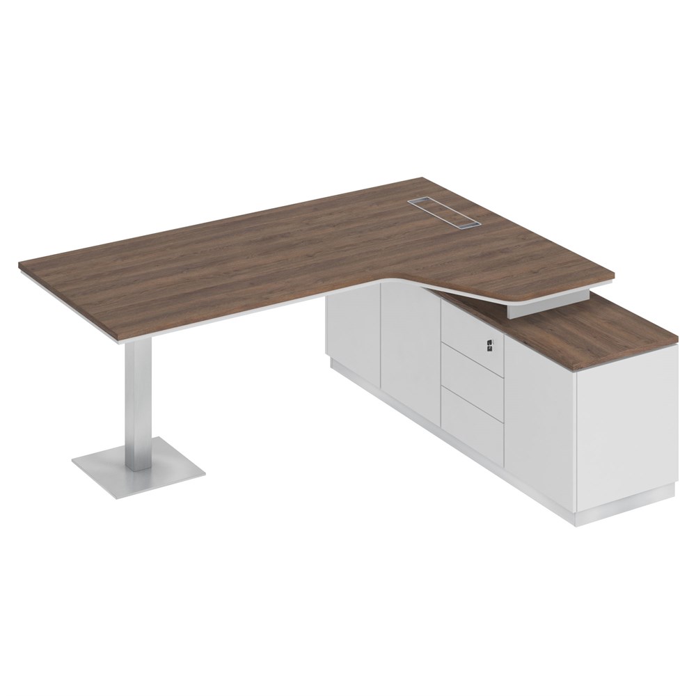 Стол руководителя эргономичный на опорной тумбе левый
