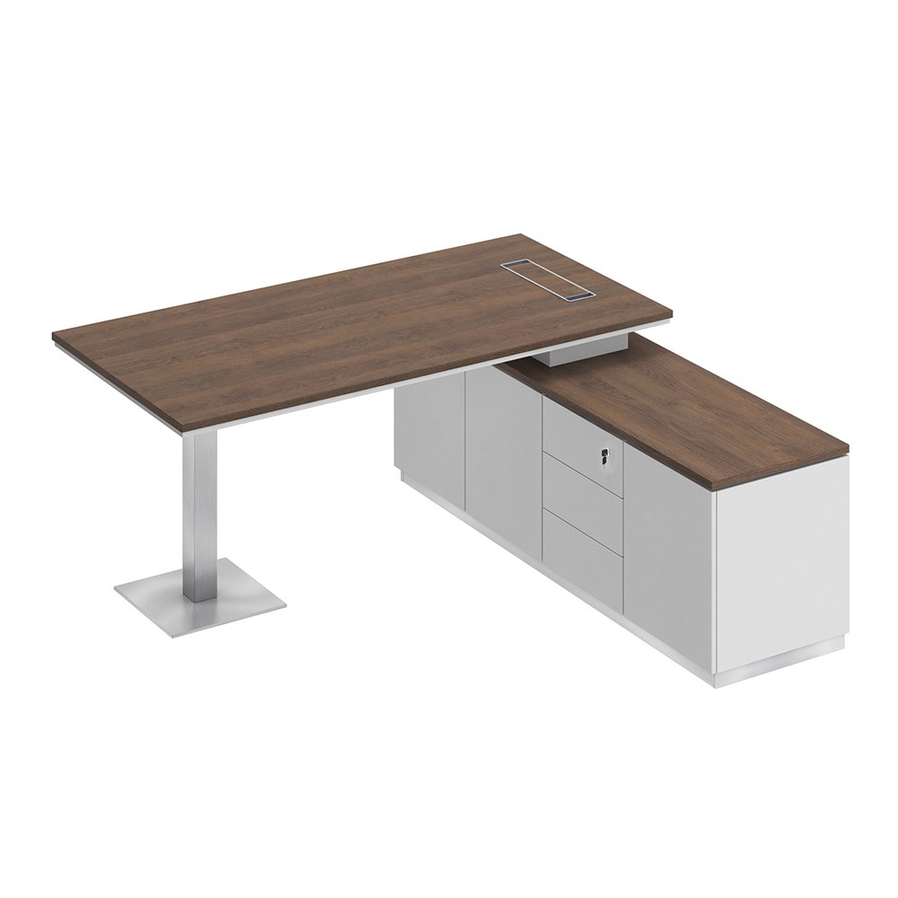 Стол руководителя эргономичный на опорной тумбе левый