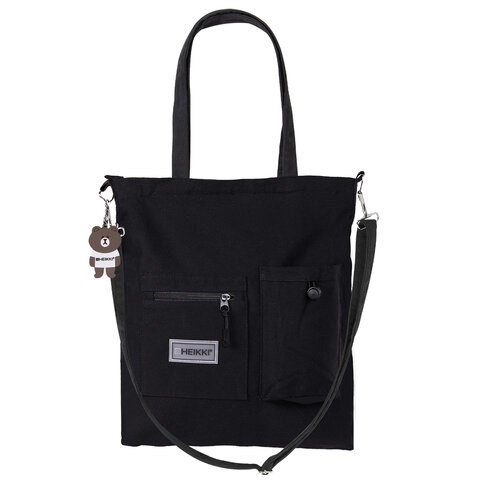 Сумка шоппер HEIKKI EQUIP (ХЕЙКИ), канвас, карман для бутылки, 38х35 см, черный, 272442