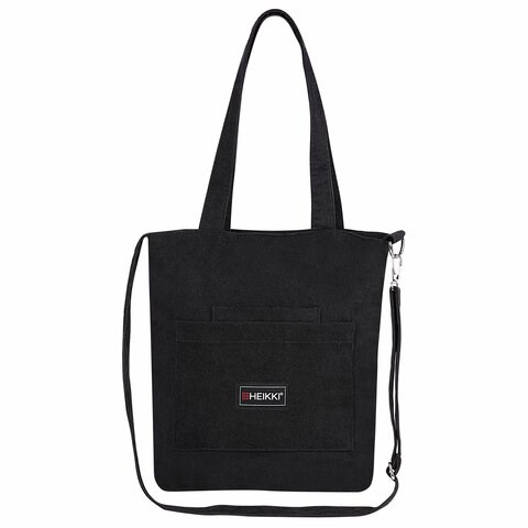 Сумка шоппер HEIKKI VELVET (ХЕЙКИ), вельвет, карманы, 35х32 см, черный, 272437