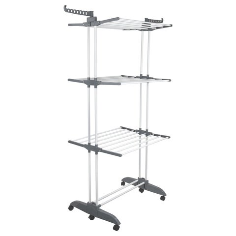 Сушилка напольная для белья раскладная МНОГОФУНКЦИОНАЛЬНАЯ, 3 уровня, на колесах, "Super Compact", СКЛАДНОЕ ОСНОВАНИЕ, LAIMA HOME, 608462