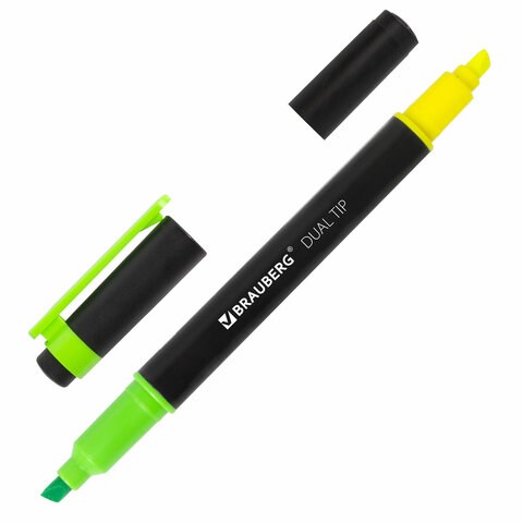 Текстовыделитель двусторонний BRAUBERG, ЖЕЛТЫЙ/ЗЕЛЕНЫЙ, линия 1-4 мм, 150841