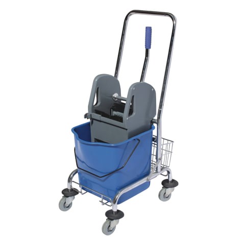 Тележка уборочная BRABIX, 1 съемное ведро 25 л, механический отжим, корзина, металлический каркас, синяя, 601498