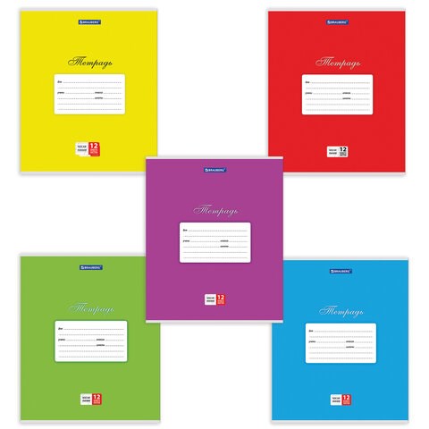 Тетрадь 12 л. BRAUBERG КЛАССИКА, косая линия, обложка картон, АССОРТИ (5 видов), 103276