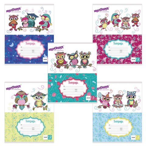 Тетрадь 12 л. ЮНЛАНДИЯ линия, обложка картон, "УМНЫЕ СОВЫ", 104912