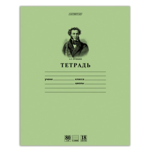 Тетрадь HATBER с классической зеленой обложкой и изображением А.С. Пушкина для дошкольников и учащихся начальных и средних классов.