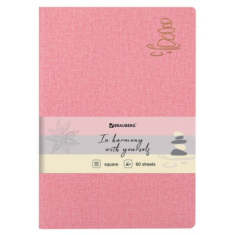 Тетрадь 60 л. в клетку обложка кожзам под рогожку, сшивка, B5 (179х250мм), РОЗОВЫЙ, BRAUBERG HARMONY, 403840