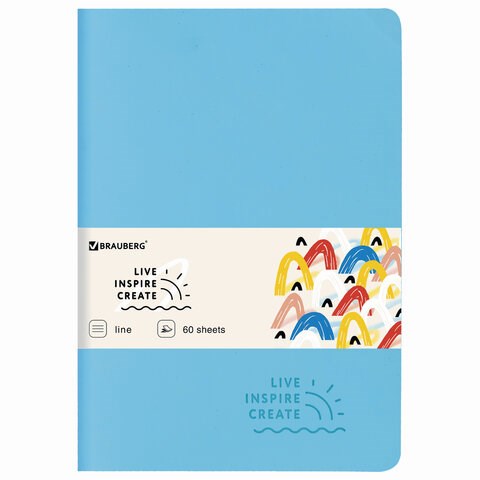 Тетрадь 60 л. в линию обложка кожзам SoftTouch, сшивка, B5 (179х250мм), ГОЛУБОЙ, BRAUBERG RAINBOW, 403886