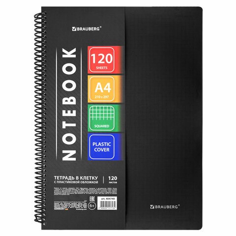 Тетрадь А4 120 л. BRAUBERG "Metropolis", спираль пластиковая, клетка, обложка пластик, ЧЕРНЫЙ, 404740