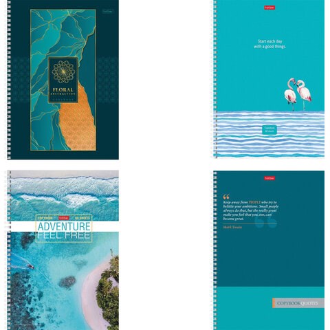 Тетрадь А4, 80 л., HATBER, гребень, линия, обложка картон, "Ассорти" (микс в спайке), 066144, 80Т4В2гр