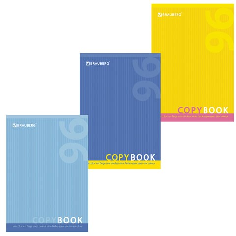 Тетрадь А4, 96 л., BRAUBERG скоба, клетка, обложка картон, ОДИН ЦВЕТ, 401880