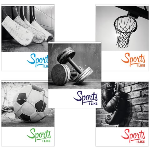 Тетрадь А5, 48 л., BRAUBERG, скоба, клетка, обложка картон, СПОРТ, 403035