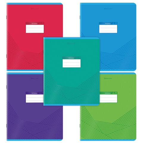 Тетрадь А5, 48 л., BRAUBERG, скоба, клетка, выборочный лак, "Классика" (микс в спайке), 404344