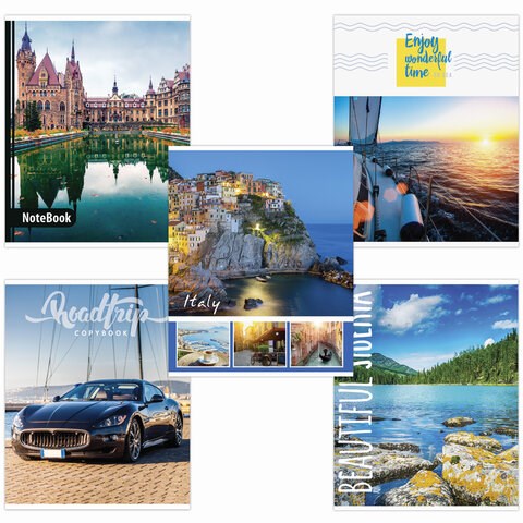 Тетрадь А5, 48 л., BRAUBERG, скоба, линия, обложка картон, МИКС, 403040