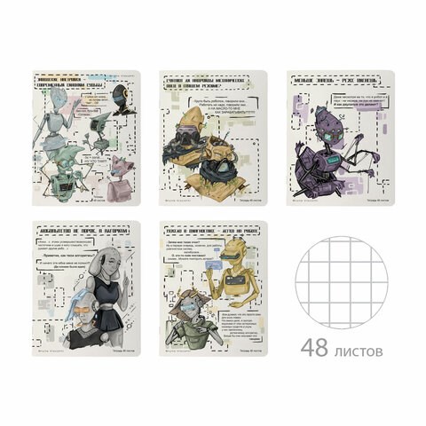 Тетрадь А5 48 л. BRUNO VISCONTI скоба, клетка, Soft Touch, "ROBOT UNIVERSE" (5 видов), 7-48-1281