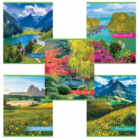Тетрадь А5, 48 л., HATBER-ECO скоба, офсет №2 ЭКОНОМ, клетка, обложка мелованная бумага, "GreenLand", 075791, 48Т5D1