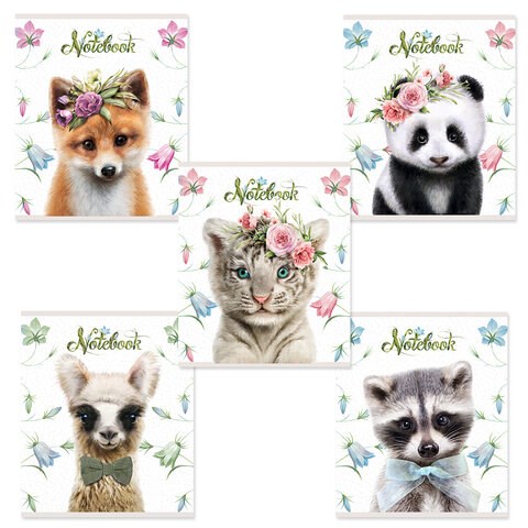 Тетрадь А5, 48 л., ПЗБМ, скоба, клетка, конгрев, выборочный TWIN лак, "Звери ми-ми-ми" (5 видов), 027026