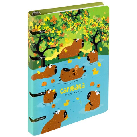 Тетрадь на кольцах А5 160х212 мм, 120 листов, картон, выборочный лак, клетка, BRAUBERG, "Капибары", 404731