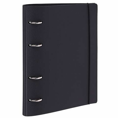 Тетрадь на кольцах А5 175х220 мм, 120 л., пластик, с резинкой, BRAUBERG, Черный, 404618