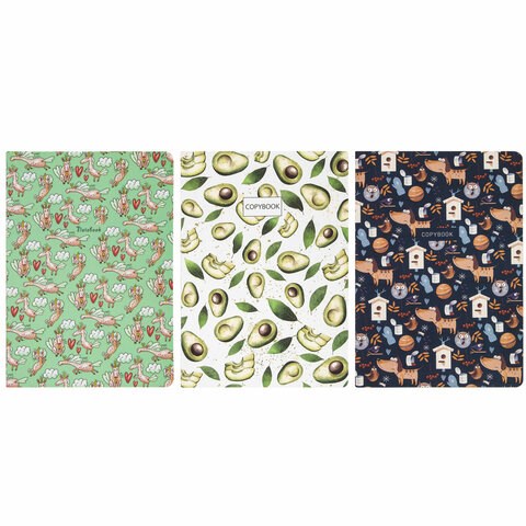 Тетради 40 л. в клетку обложка SoftTouch, НАБОР 3 шт., бежевая бумага 70 г/м2, сшивка, А5 (147х210 мм), PATTERN, BRAUBERG, 403792