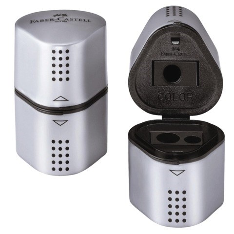 Точилка FABER-CASTELL "Trio Grip 2001", 3 отверстия, 2 контейнера, пластиковая, серебристая, 183800