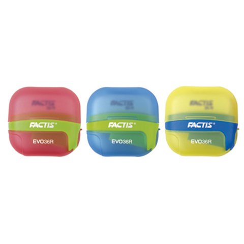 Точилка FACTIS EVO36R (Испания), с контейнером и стирательной резинкой, 50x50x25 мм, ассорти, F4707116