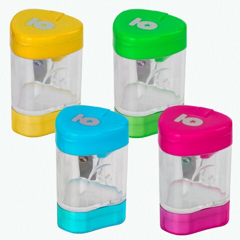 Точилка ЮНЛАНДИЯ "Трио +", со стирательной резинкой, с контейнером, пластиковая, ассорти, 228439