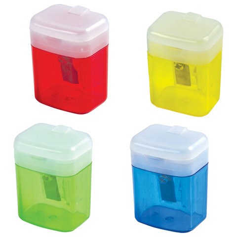 Точилка STAFF "College" PS-533, с контейнером и крышкой, прямоугольная, тонированный ассорти, 226533
