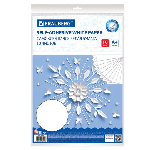Набор белой самоклеящейся бумаги BRAUBERG предназначен для творчества, хобби, моделирования, оформления презентаций как любителями, так и профессионально занимающимися людьми.