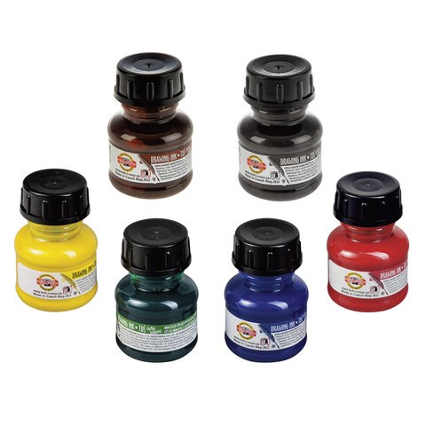 Тушь KOH-I-NOOR, набор 6 шт. х 20 мл, ассорти, картонная коробка, 01417S0601KK