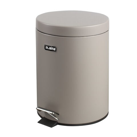 Ведро мусорное с педалью 5 литров "Classic", СЕРОЕ МАТОВОЕ, металлическое, со съемным внутренним ведром, LAIMA, 602489, 602849