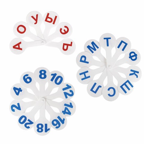Веер-касса (гласные, согласные и цифры) ЮНЛАНДИЯ, НАБОР 3 шт., европодвес, 270432