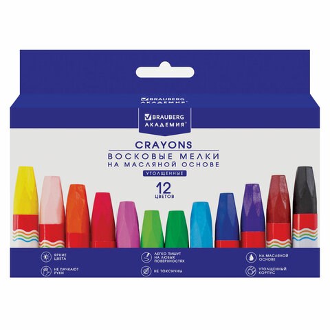 Восковые мелки утолщенные BRAUBERG "АКАДЕМИЯ", НАБОР 12 цветов, на масляной основе, яркие цвета, 227295